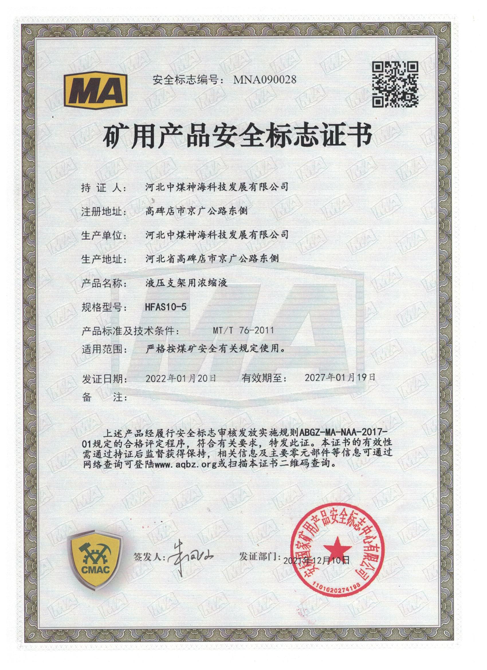 河北中煤神??萍及l(fā)展有限公司難燃液壓液產(chǎn)品上線