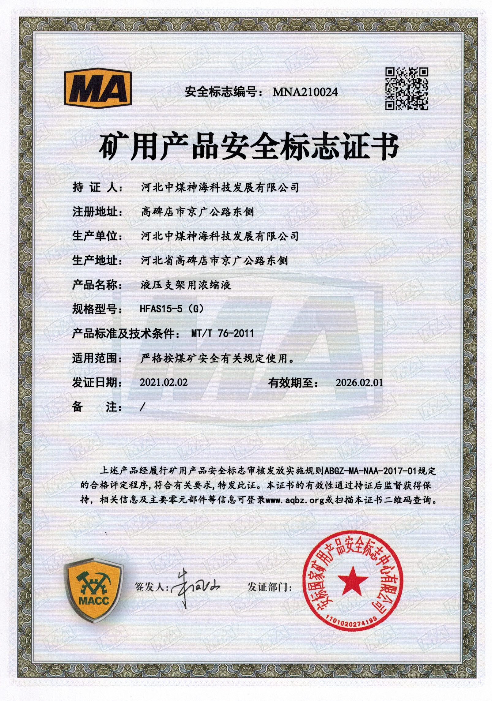 河北中煤神??萍及l(fā)展有限公司難燃液壓液產(chǎn)品上線